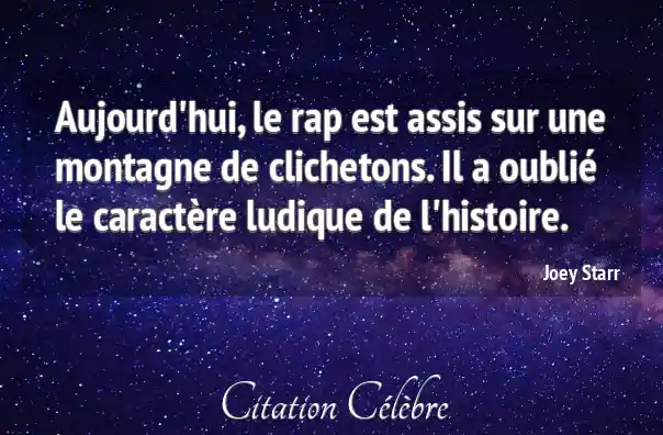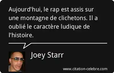 Citation Joey Starr histoire : Aujourd'hui, le rap est assis sur une montagne de clichetons....