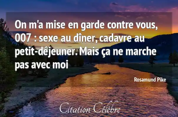 On m'a mise en garde contre vous, 007 : sexe au dîner, cadavre au petit-déjeuner. Mais ça ne marche pas avec moi