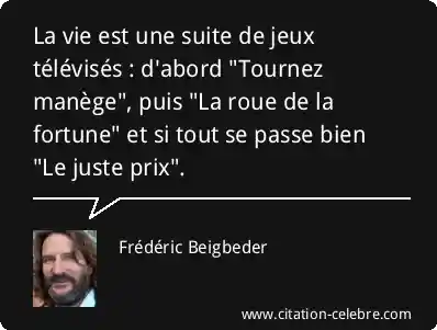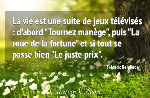 La vie est une suite de jeux télévisés : d'abord "Tournez manège", puis "La roue de la fortune" et si tout se passe bien "Le juste prix".