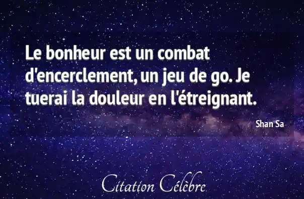 Le bonheur est un combat d'encerclement, un jeu de go. Je tuerai la douleur en l'étreignant.