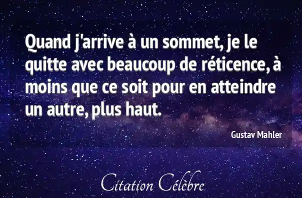 Quand j'arrive à un sommet, je le quitte avec beaucoup de réticence, à moins que ce soit pour en atteindre un autre, plus haut.
