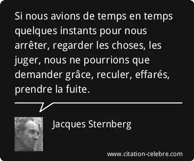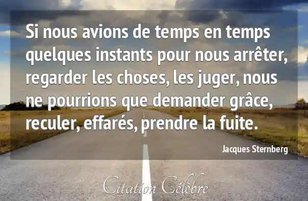 Si nous avions de temps en temps quelques instants pour nous arrêter, regarder les choses, les juger, nous ne pourrions que demander grâce, reculer, effarés, prendre la fuite.