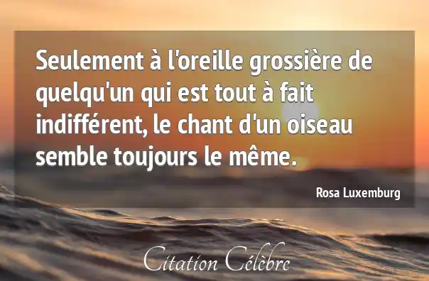 Seulement à l'oreille grossière de quelqu'un qui est tout à fait indifférent, le chant d'un oiseau semble toujours le même.