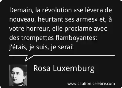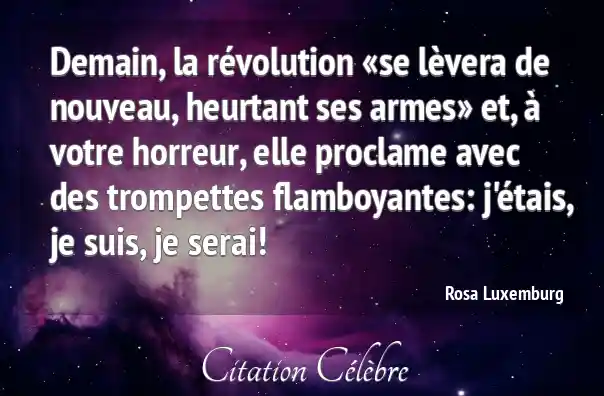 Demain, la révolution «se lèvera de nouveau, heurtant ses armes» et, à votre horreur, elle proclame avec des trompettes flamboyantes: j'étais, je suis, je serai!