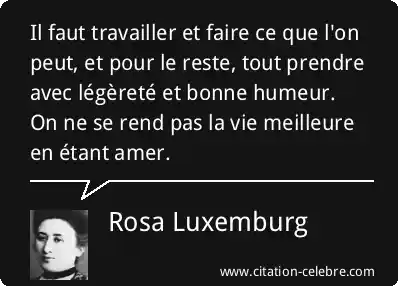 Il faut travailler et faire ce que l'on peut, et pour le reste, tout prendre avec légèreté et bonne humeur. On ne se rend pas la vie meilleure en étant amer.