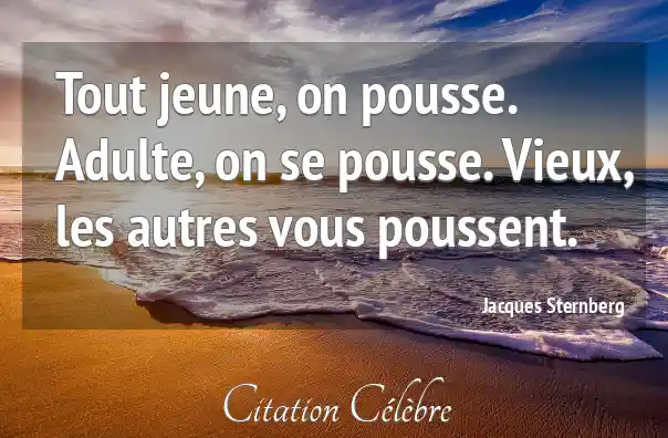 Tout jeune, on pousse. Adulte, on se pousse. Vieux, les autres vous poussent.