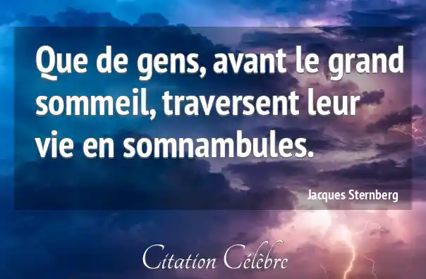 Que de gens, avant le grand sommeil, traversent leur vie en somnambules.