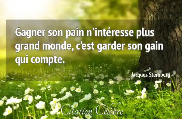 Gagner son pain n'intéresse plus grand monde, c'est garder son gain qui compte.