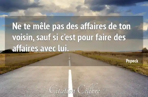 Ne te mêle pas des affaires de ton voisin, sauf si c'est pour faire des affaires avec lui.