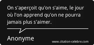 On s'aperçoit qu'on s'aime, le jour où l'on apprend qu'on ne pourra jamais plus s'aimer.