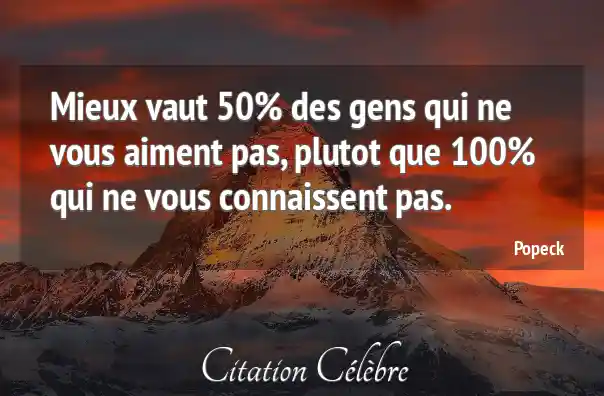 Mieux vaut 50% des gens qui ne vous aiment pas, plutot que 100% qui ne vous connaissent pas.
