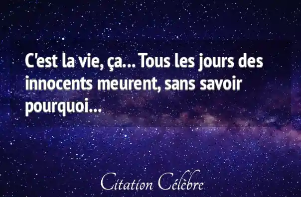 C'est la vie, ça... Tous les jours des innocents meurent, sans savoir pourquoi...