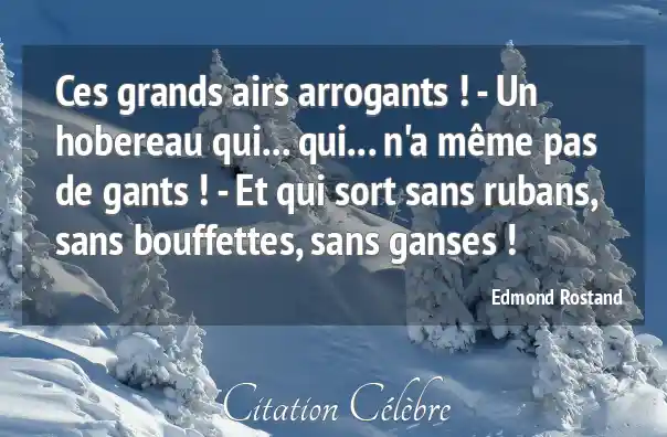 Ces grands airs arrogants ! - Un hobereau qui... qui... n'a même pas de gants ! - Et qui sort sans rubans, sans bouffettes, sans ganses !