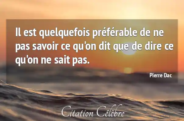 Citation Pierre Dac savoir : Il est quelquefois préférable de ne pas savoir ce qu'on...