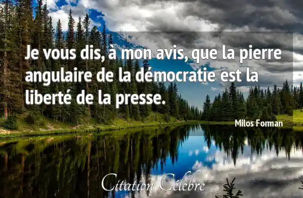 Je vous dis, à mon avis, que la pierre angulaire de la démocratie est la liberté de la presse.