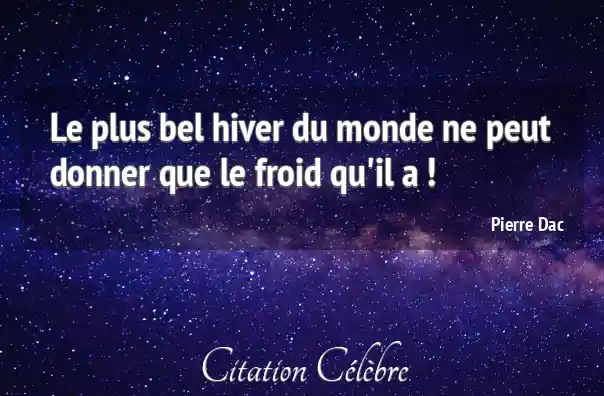 Le plus bel hiver du monde ne peut donner que le froid qu'il a !