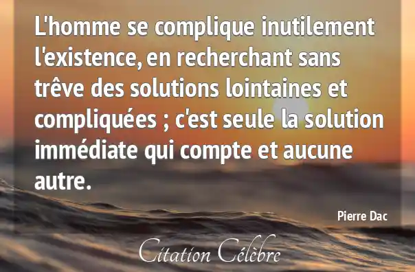 L'homme se complique inutilement l'existence, en recherchant sans trêve des solutions lointaines et compliquées ; c'est seule la solution immédiate qui compte et aucune autre.