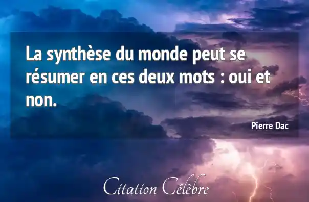 La synthèse du monde peut se résumer en ces deux mots : oui et non.