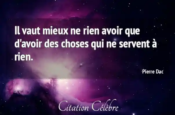 Il vaut mieux ne rien avoir que d'avoir des choses qui ne servent à rien.