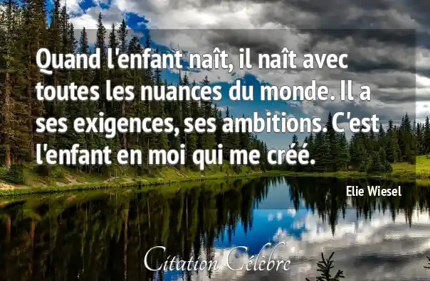 Quand l'enfant naît, il naît avec toutes les nuances du monde. Il a ses exigences, ses ambitions. C'est l'enfant en moi qui me créé.