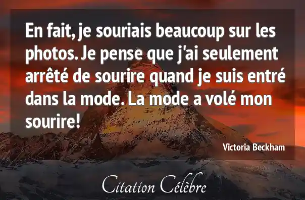 En fait, je souriais beaucoup sur les photos. Je pense que j'ai seulement arrêté de sourire quand je suis entré dans la mode. La mode a volé mon sourire!