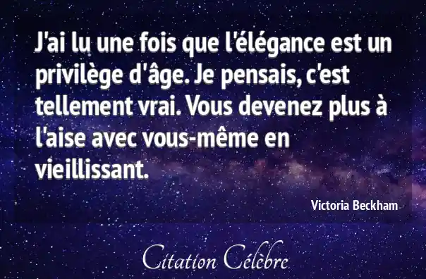 J'ai lu une fois que l'élégance est un privilège d'âge. Je pensais, c'est tellement vrai. Vous devenez plus à l'aise avec vous-même en vieillissant.