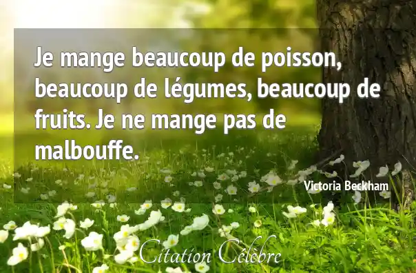 Je mange beaucoup de poisson, beaucoup de légumes, beaucoup de fruits. Je ne mange pas de malbouffe.