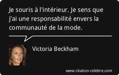 Je souris à l'intérieur. Je sens que j'ai une responsabilité envers la communauté de la mode.