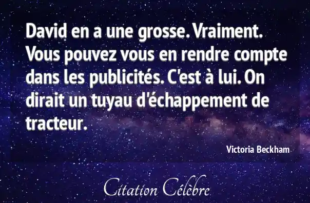 David en a une grosse. Vraiment. Vous pouvez vous en rendre compte dans les publicités. C'est à lui. On dirait un tuyau d'échappement de tracteur.