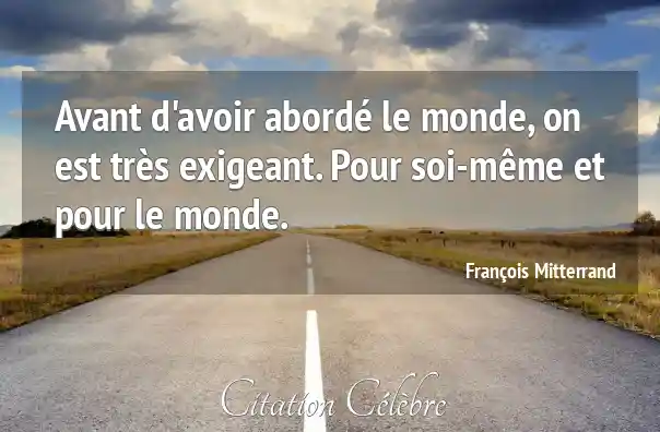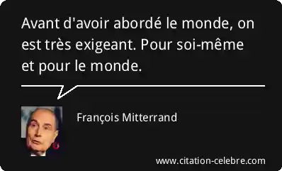 Avant d'avoir abordé le monde, on est très exigeant. Pour soi-même et pour le monde.