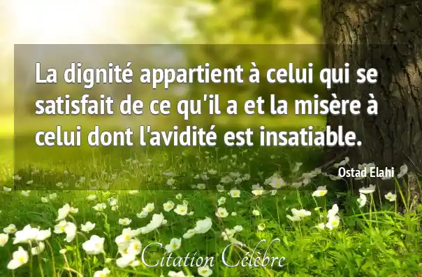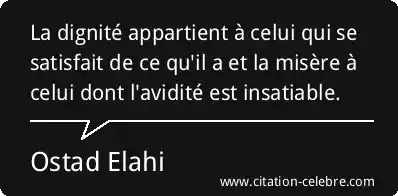 La dignité appartient à celui qui se satisfait de ce qu'il a et la misère à celui dont l'avidité est insatiable.