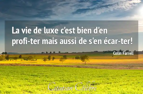 La vie de luxe c'est bien d'en profiter mais aussi de s'en écarter!