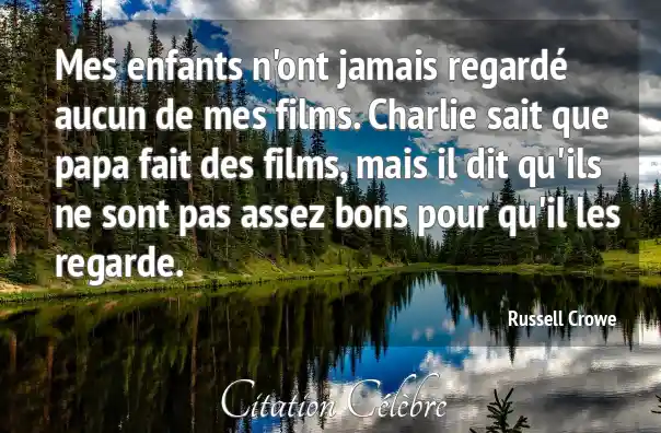 Mes enfants n'ont jamais regardé aucun de mes films. Charlie sait que papa fait des films, mais il dit qu'ils ne sont pas assez bons pour qu'il les regarde.