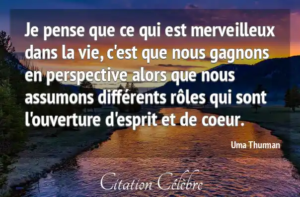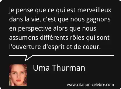 Je pense que ce qui est merveilleux dans la vie, c'est que nous gagnons en perspective alors que nous assumons différents rôles qui sont l'ouverture d'esprit et de coeur.