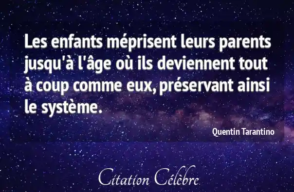 Les enfants méprisent leurs parents jusqu'à l'âge où ils deviennent tout à coup comme eux, préservant ainsi le système.