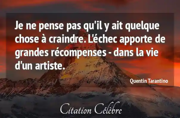 Je ne pense pas qu'il y ait quelque chose à craindre. L'échec apporte de grandes récompenses - dans la vie d'un artiste.