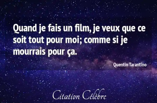 Quand je fais un film, je veux que ce soit tout pour moi; comme si je mourrais pour ça.