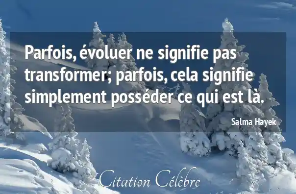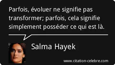 Citation Salma Hayek parfois : Parfois, évoluer ne signifie pas transformer; parfois, cela signifie simplement...