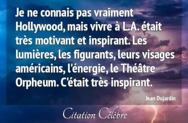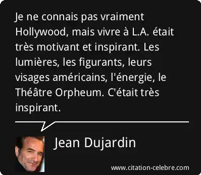 Je ne connais pas vraiment Hollywood, mais vivre à L.A. était très motivant et inspirant. Les lumières, les figurants, leurs visages américains, l'énergie, le Théâtre Orpheum. C'était très inspirant.