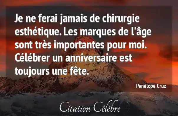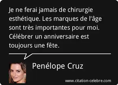 Je ne ferai jamais de chirurgie esthétique. Les marques de l'âge sont très importantes pour moi. Célébrer un anniversaire est toujours une fête.