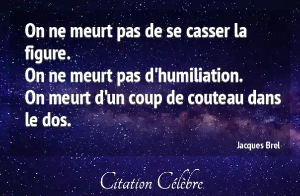 On ne meurt pas de se casser la figure. On ne meurt pas d'humiliation. On meurt d'un coup de couteau dans le dos.