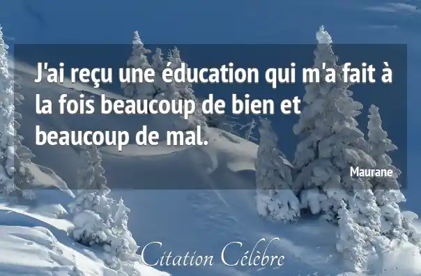 J'ai reçu une éducation qui m'a fait à la fois beaucoup de bien et beaucoup de mal.