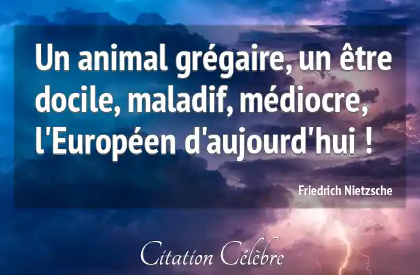 Un animal grégaire, un être docile, maladif, médiocre, l'Européen d'aujourd'hui !