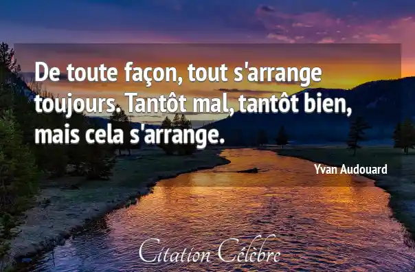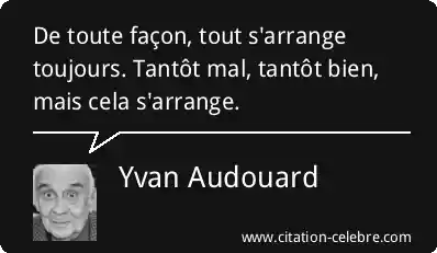 Citation Yvan Audouard bien : De toute façon, tout s'arrange toujours. Tantôt mal, tantôt bien,...