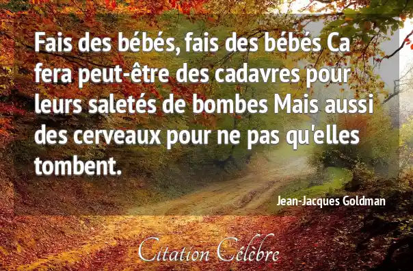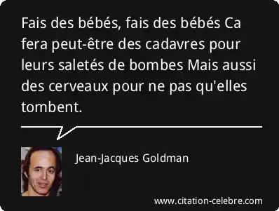 Fais des bébés, fais des bébés Ca fera peut-être des cadavres pour leurs saletés de bombes Mais aussi des cerveaux pour ne pas qu'elles tombent.