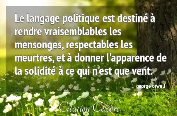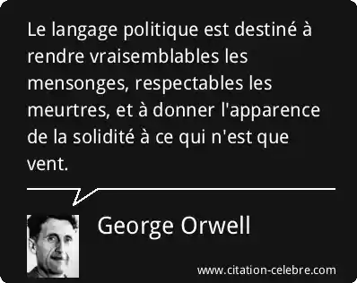 Le langage politique est destiné à rendre vraisemblables les mensonges, respectables les meurtres, et à donner l'apparence de la solidité à ce qui n'est que vent.