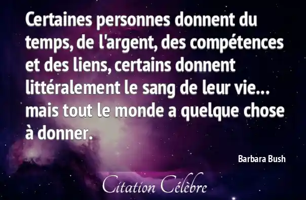 Certaines personnes donnent du temps, de l'argent, des compétences et des liens, certains donnent littéralement le sang de leur vie... mais tout le monde a quelque chose à donner.