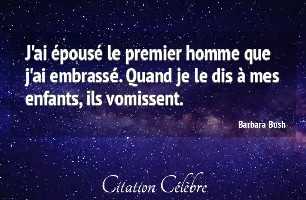 Citation Barbara Bush homme : J'ai épousé le premier homme que j'ai embrassé. Quand je...