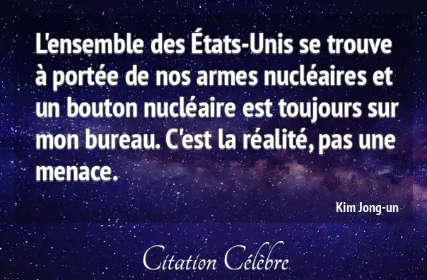 L'ensemble des États-Unis se trouve à portée de nos armes nucléaires et un bouton nucléaire est toujours sur mon bureau. C'est la réalité, pas une menace.
