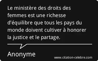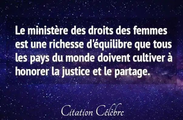 Le ministère des droits des femmes est une richesse d'équilibre que tous les pays du monde doivent cultiver à honorer la justice et le partage.